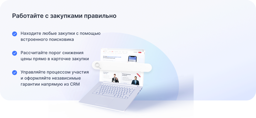 Интегрированы все необходимые сервисы для полноценного участия в торгах
